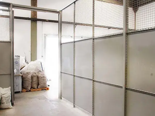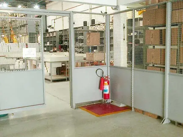 As divisórias industriais são utilizadas para o fechamento ou para separação de áreas. São fornecidas na altura padrão de 2,40m de altura ou sob medida, e podem ser revestidas em chapa de aço MSG24 ou em tela galvanizada, ondulada, de malha quadrada de 1/4? em fio WSG 12 ou ainda em chapa-vidro.