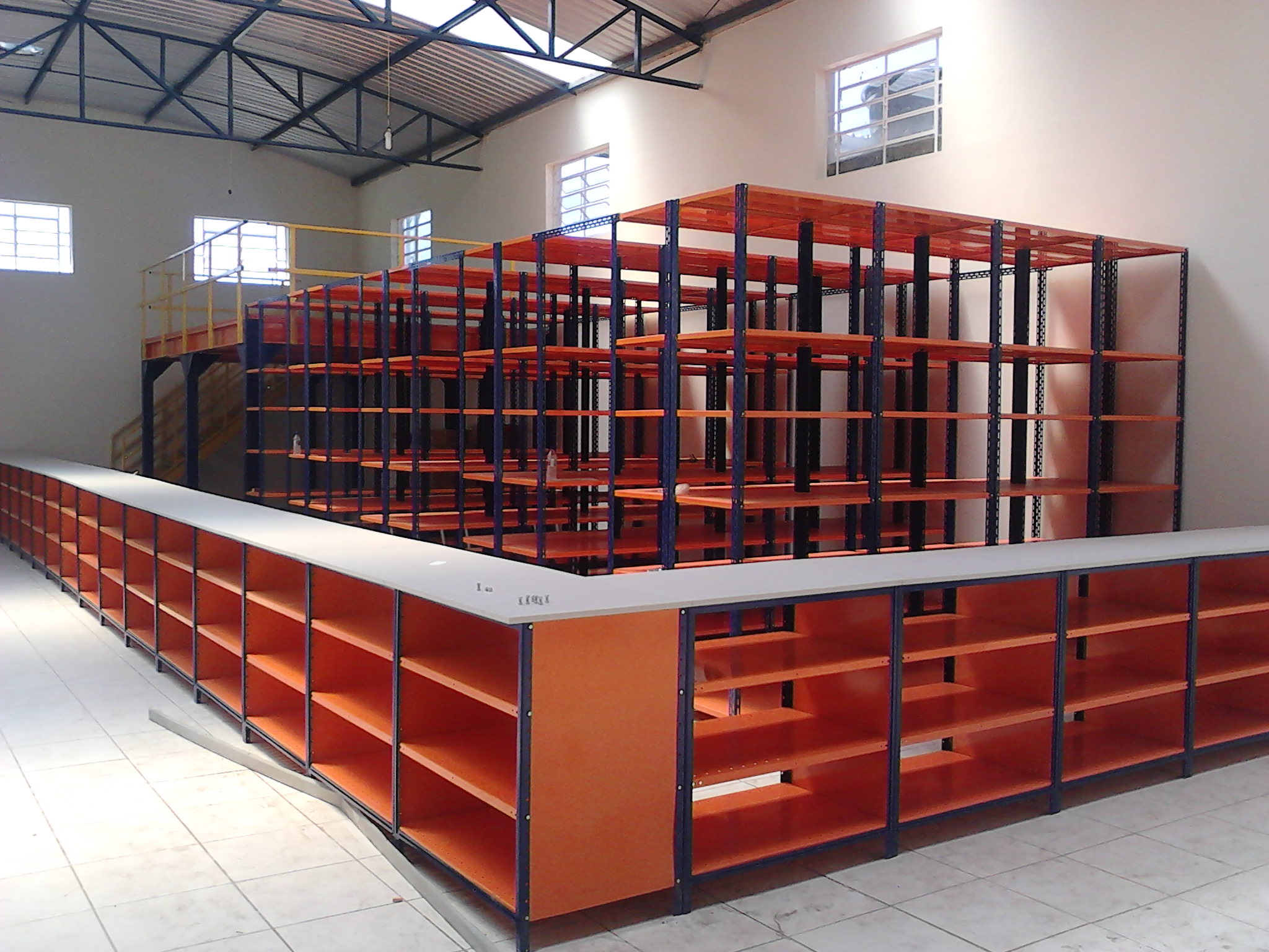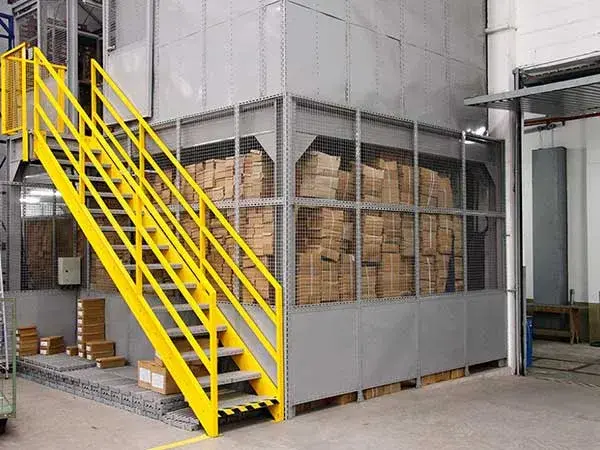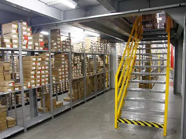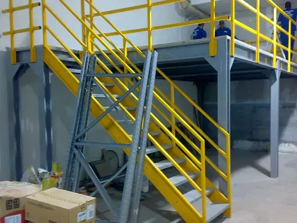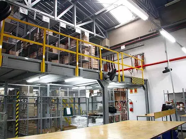 Os mezaninos são utilizados para escritórios ou para aumentarem a área de armazenagem de materiais.